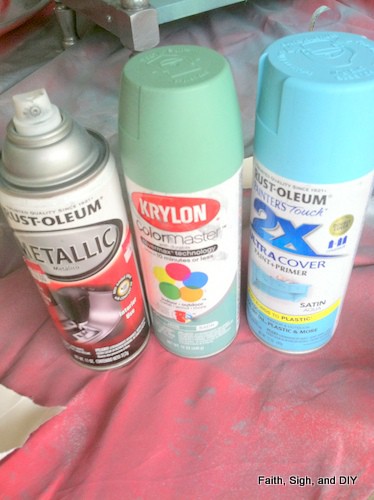 I decided to paint the legs silver and apron the Chrome color, one of my favorite paints. I painted the top and the shelf the blue.