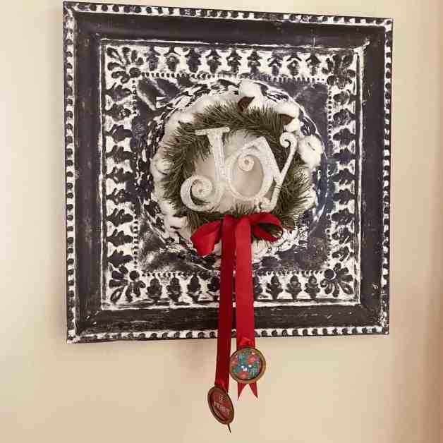 On a lighter note. Here are some more pics. The linens on the door are vintage. I love vintage. The shelf is in the kitchen, and those twig houses are all made by my “bestie”, as is the large one on the dining room table.