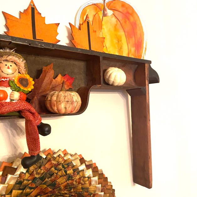 I found the architectural piece on the wall and bought with no idea what to do with it. But I like what I did and will leave it up for Christmas and change out the items on it.