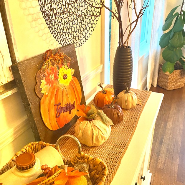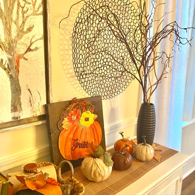 I just had to add these final fall pictures. The sign below is just a cheap sign from DT. I used acrylic paints and painted over it. I added the word and then glue it on the backside of a frame I already had. The middle picture is a better picture of the actual color.