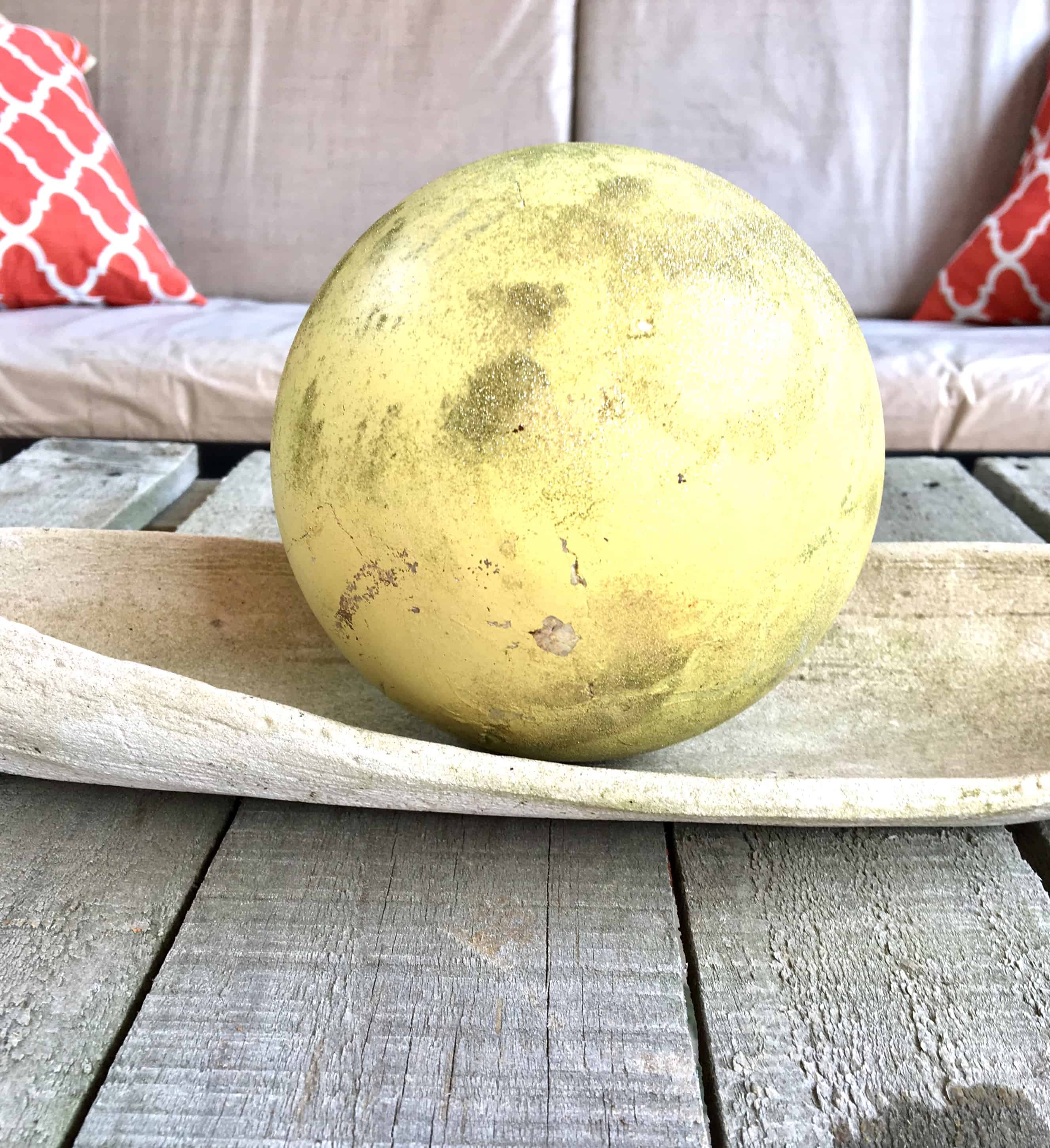 I had this cement ball in the house and brought it outside to put in this wonderful cement tray. All garage sale items.
