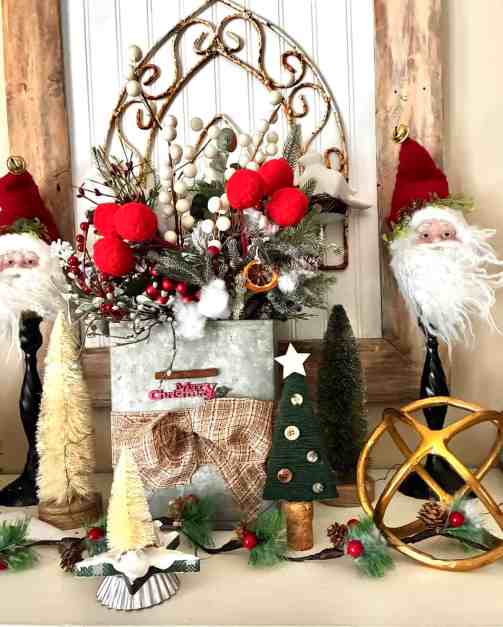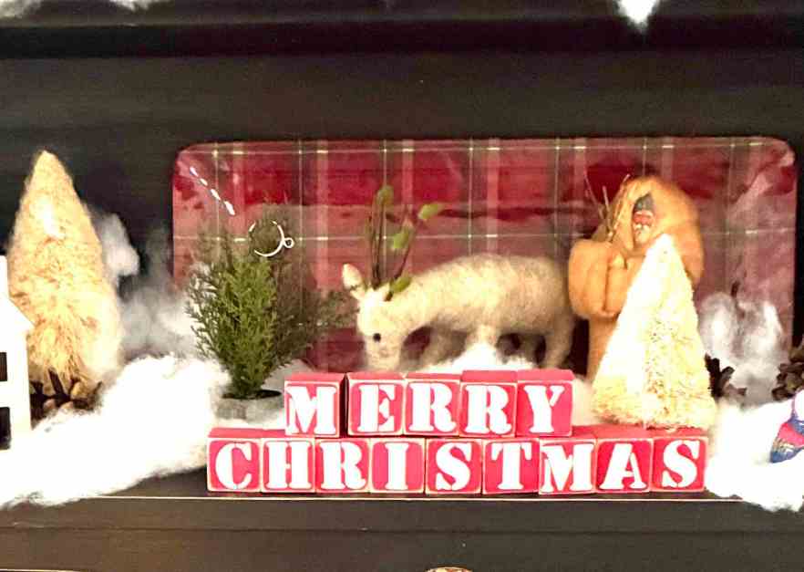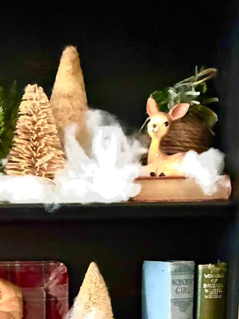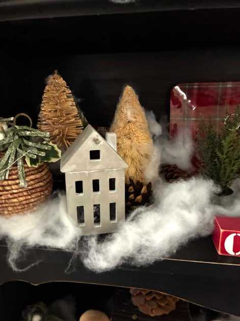 Our home is over one hundred-twenty years old, and between the kitchen and the mudroom is a small hallway/room. My husband built some shelves on one side. I lined up all the cookies in my favorite red and white tins, labeled each, and set them on top of a snow blanket interspersed with little trees. It was a great idea, but I didn’t take pictures. Sorry.