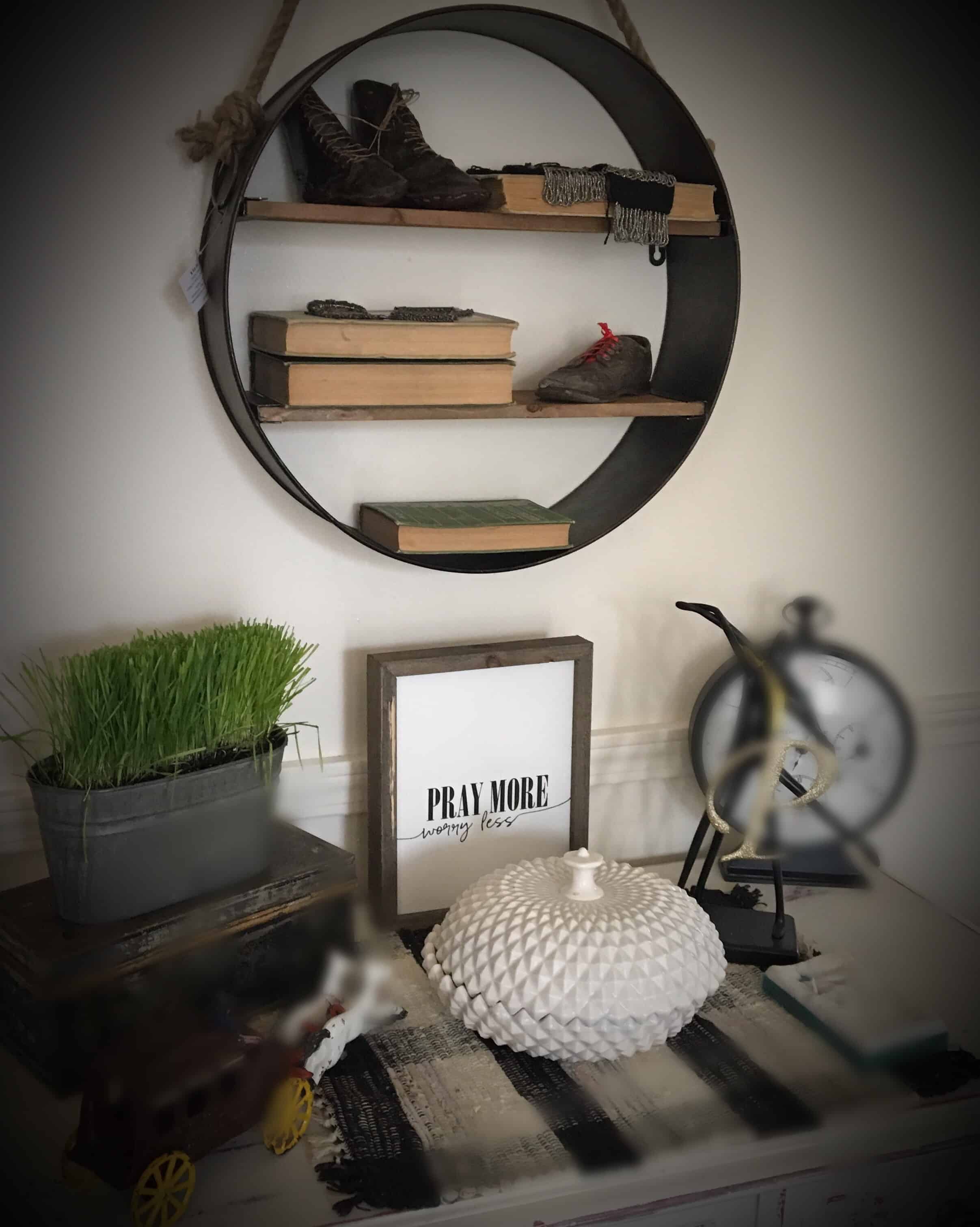 I found this cute wall “thingee” at Hobby Lobby last weekend so thought I would share it with you. I had a coupon so I think it was only about $20.00. I’ve so been needing to get something for this wall. I really like it.