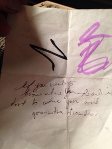 You see I’m learning that the more “things” i have to keep track of, organize, clean, and keep in their proper place, the less time I have to think about and attend to the important things. I think my mom’s age (90) has a lot to do with the need to scale down. Even though she’s a very active ninety-year old, she no longer drives so I’ve taken on a lot for her. I don’t want to resent it. I don’t want to always have something to take care of when she’s the one that needs it the most. All of this brings me to this little slip of paper. (I was also checking to see if the markers had dried out as you can tell.)