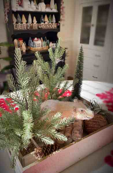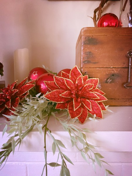 This year I had to be especially creative. My daughter has a Golden Doodle puppy. Need I say more? So mostly I created “up” if you know what I mean. And even then, he managed to get to some items I didn’t think he could. My Christmas decorating was all about change.