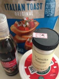 - Spread about one Tablespoon Ricotta Cheese over the toast. (If you can’t find a crusty toast, you can use french bread and bake until it gets a little dried out and crusty.)