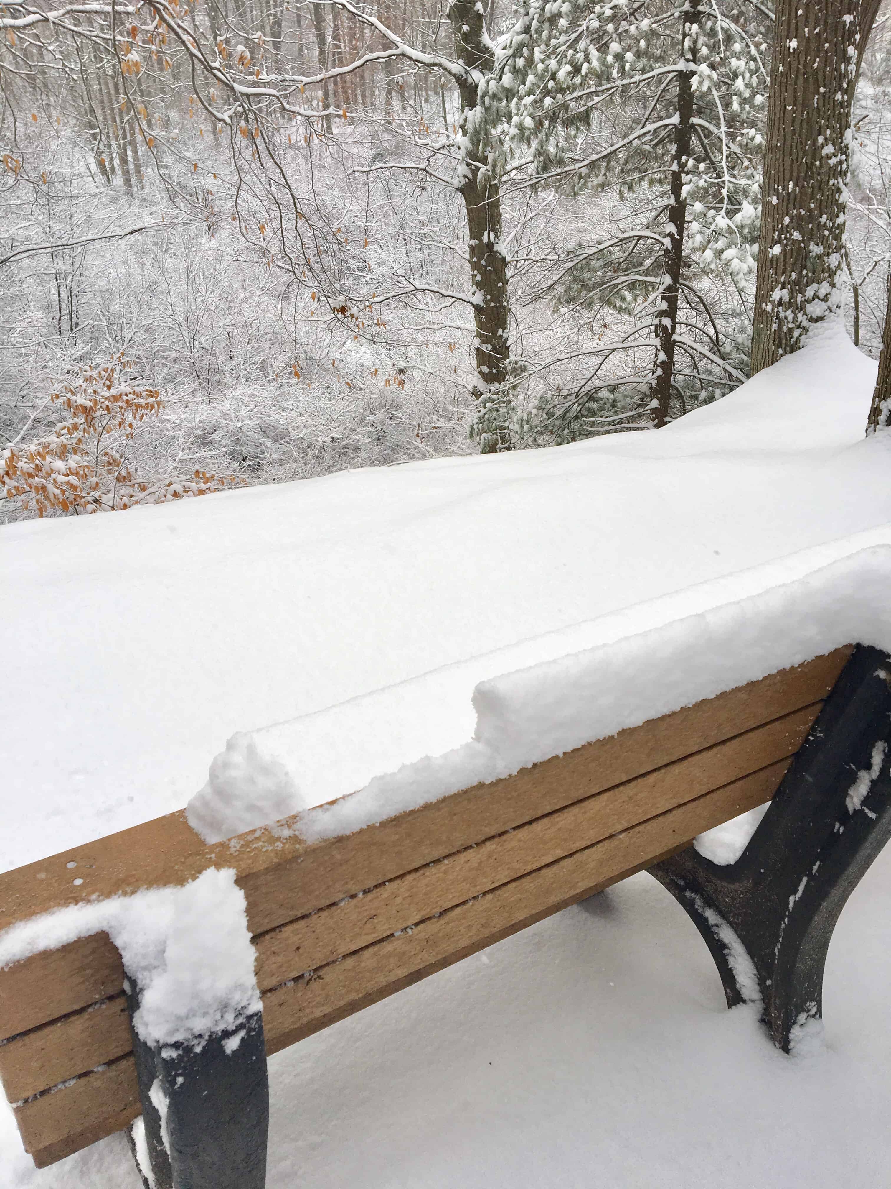 Last week, after a fresh snowfall, we walked in the woods. It’s a state park about two miles from our house and only a couple of the main roads are plowed. So once we veer off those, it can be tough going.