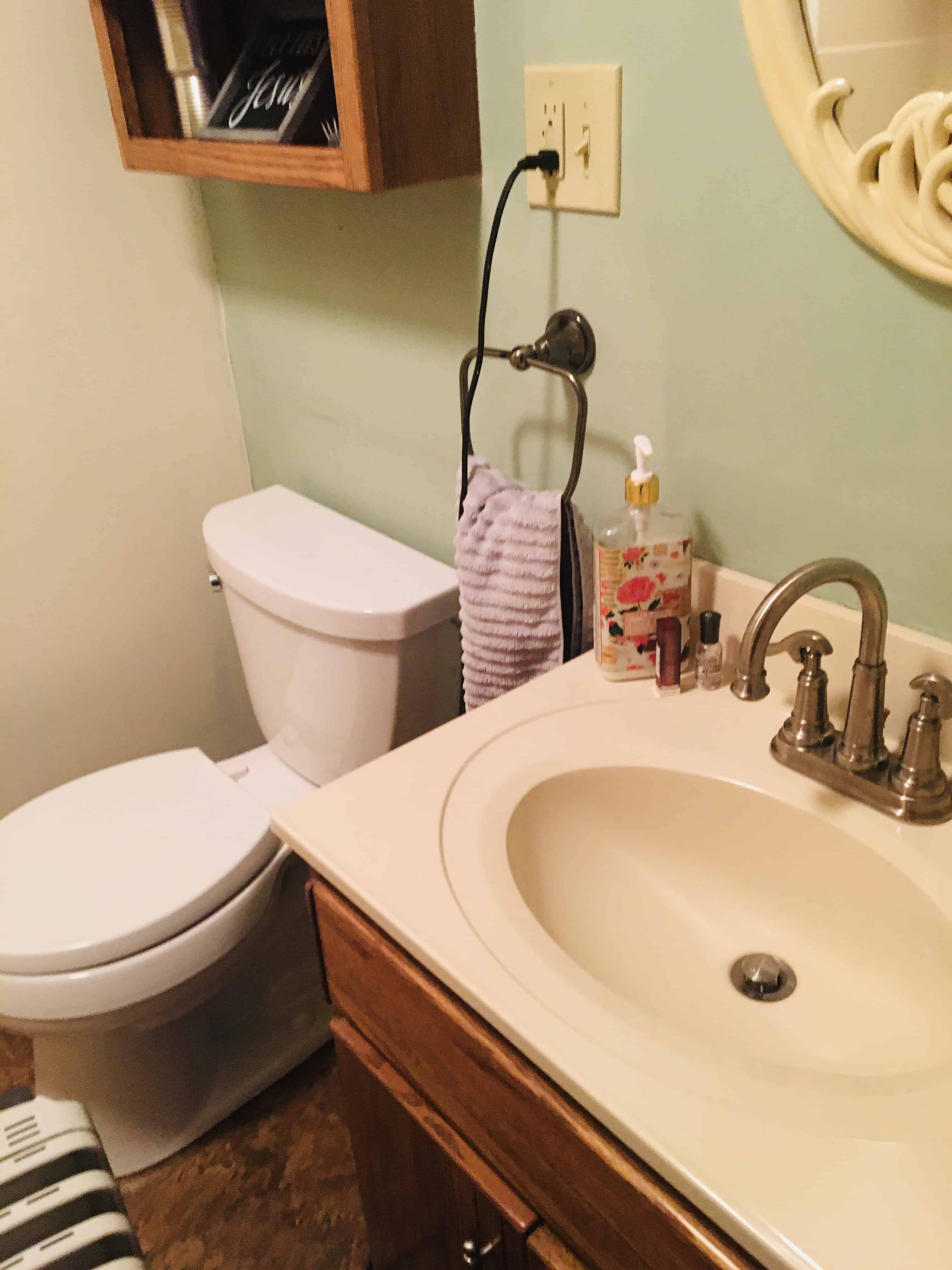So when you see an post about a tiny bathroom, remember mine. It’s truly the definition of “tiny”.
