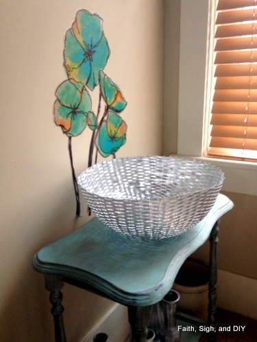 As you can see from this angle, the flowers are not in the basket but on the wall. Scored them at Hobby Lobby for $5.00. They were in the clearance area.
