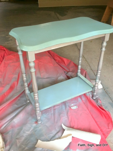 This picture shows first round of painting. I barely sanded as I knew I was going to distress it anyway. This picture is kind of blurry.