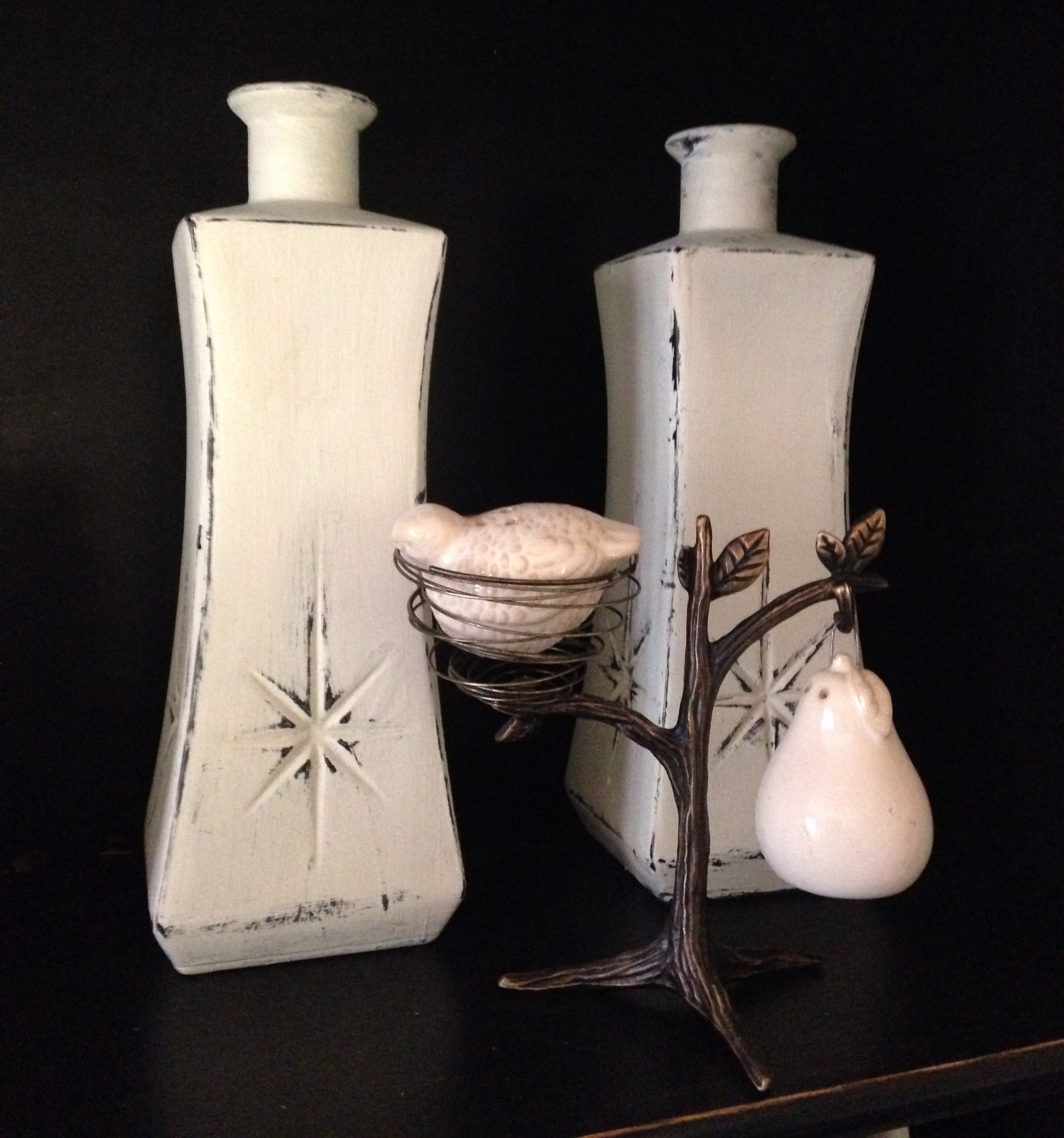 5. Dishware of any kind. Bowls, pitchers, cups, glasses, vases, plates, vases and bottles, etc. I love mixing and matching. Some bloggers search out white plates, and because they are all white it provides a beautiful table vignette while still keeping it from being too matchy-matchy. These are some of my favorite upcycled vases and bottles.