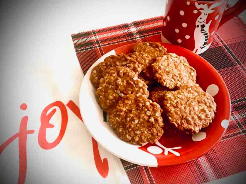 ANZAC stands for “Australian, New Zeeland Air Corp”. These cookies were developed as a high calorie, long-lasting cookie for the enlisted men. They ship easily and because there are no eggs, they were able to keep them for a long time.